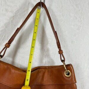 This chic Cole Haan Slouch HoBo BoHo Leather shoulder bag in a rich brown color offers spacious storage. Perfect for work, travel, or casual outings, it's designed to make a style statement while keeping essentials organized.