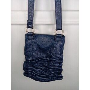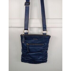 Cole Haan Slouchy Leather Crossbody Bag Navy Blue Zip Pockets Adjustable Strap