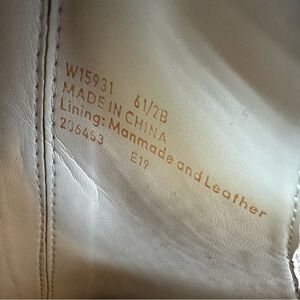 Chic Cole Haan Electa Roccia booties in a striking beige and black snake print design. Crafted with a combination of leather and manmade materials, these stylish shoes feature a flattering peep toe, cutout sides, and a tall stacked block heel that offers both height and stability. Easy slip-on style with Cole Haan’s Grand.ØS comfort technology for all-day wear. Marked size 6.5B, fits true to size. Excellent pre-owned condition with only light wear on soles, uppers pristine. Perfect statement booties for elevating denim, dresses, or night-out looks.