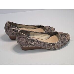 Cole Haan Snakeskin Leather Peep Toe Wedge Kitten Heel Sz 6.5 Nike Air Tech work