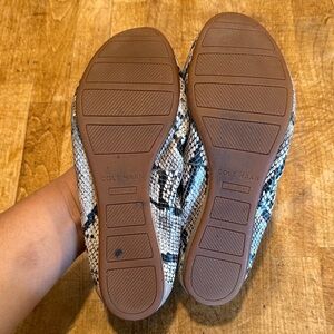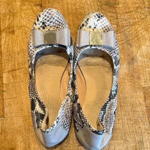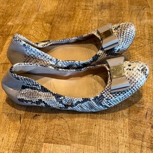 Elegant flats with a snakeskin print. Features a stylish bow accent. Ideal for a chic look.