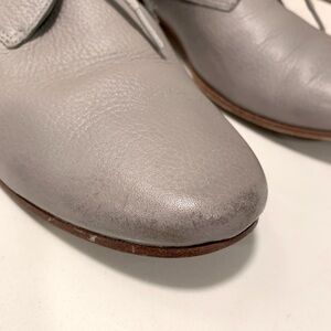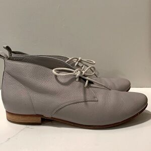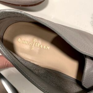 Cole Haan leather lace up ankle shoes. Color is Paloma Deerskin. Or we can just say gray. It’s more like the color of elephants skin if you ask me! In wonderful condition. The leather is extremely soft. Size 8.5 signs of wear shown in photos.