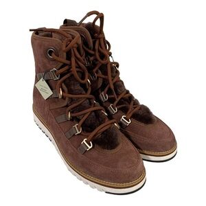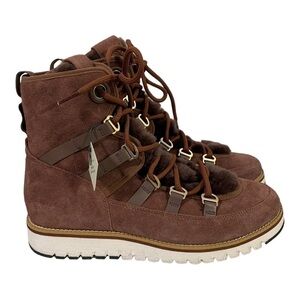 Cole Haan Suede Faux Fur Lined Speed Lace Up Boots Size 9.5 NEW