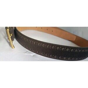 Cole Haan Suede Leather Belt Mens Size 38 Dark Brown 32MM Feather Edge New