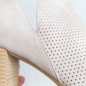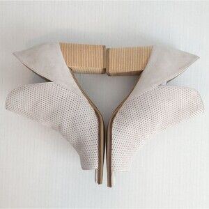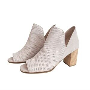 Cole Haan Suede Open Toe Booties Slip-On Taupe Perforated New