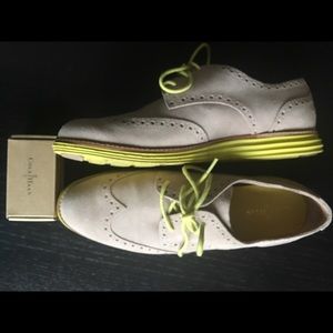 Very cool and very comfortable Cole Haan wing tip lace-up shoes. Only worn twice and in excellent condition. Comes with original mini suede cleaning kit (pictured).