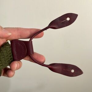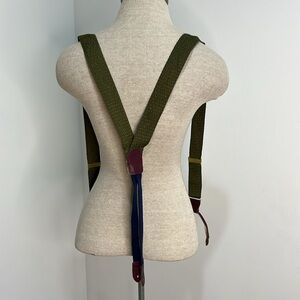 Cole Haan Suspenders Green Straps Burgundy Leather Button Connector Brass Clasps