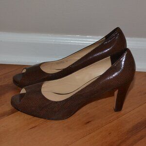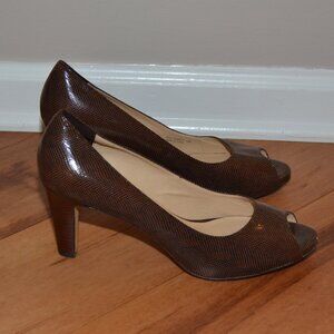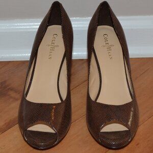 Cole Haan Tali Grand Dark brown Patent leather pump peep toe Heels, sz 10B