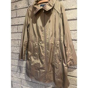 Cole Haan Tan Lightweight Hooded Zip-Up RainCoat With Pockets Womens Size M irid