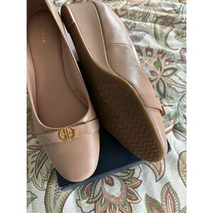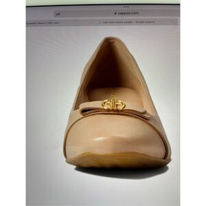 Elegant tan wedges with gold accent. Perfect for any occasion.