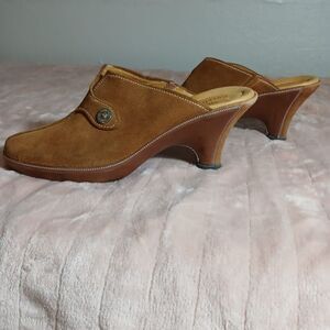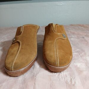 Cole Haan Tan Mules with Suede Finish and Wooden Heel Size 9.5