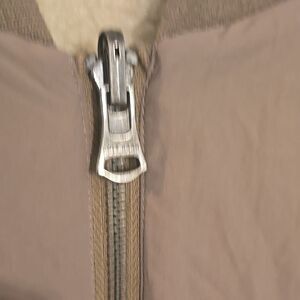 This Cole Haan varsity jacket in a sophisticated tan hue combines style and comfort effortlessly. The relaxed fit and medium-length design make it a versatile addition to any wardrobe, perfect for casual or sporty occasions. Its smooth finish and stand-up collar add a touch of modern elegance.