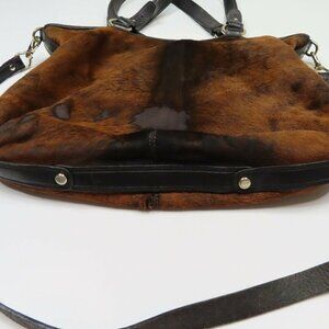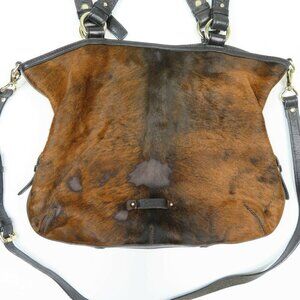 Cole Haan Tantivy Chestnut Brown Haircalf Cowhide Shoulder Bag Purse Handbag