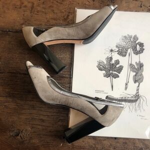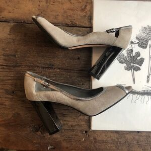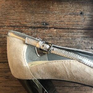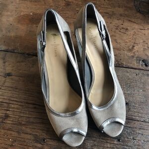 Cole Haan Taupe and Sliver Peep Toe Heels 9