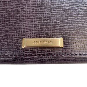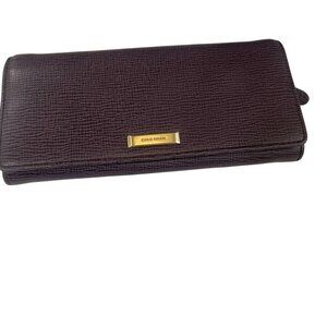 Cole Haan Textured Leather Wallet Burgundy Gold Hardware Minimalist Classic
