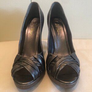 Cole Haan Tonya pewter-colored leather open-toe pumps sz 8