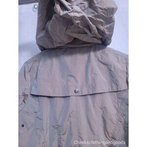 This is a pre-owned Cole Haan Topaz Iridescent Trench Raincoat Jacket Stow-Away Hood Women's size MEDIUM. This is in excellent condition.