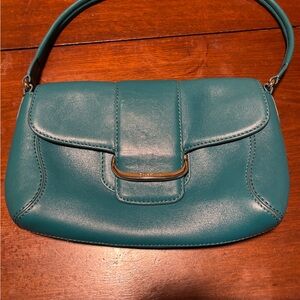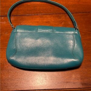 Elegant turquoise leather handbag by Cole Haan. Includes interior zip pocket.