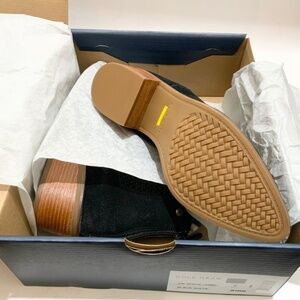 Cole Haan Val Black Suede Booties Pointed Toe Block Heel Leather Women’s Ankle Boot