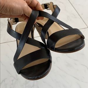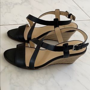 Cole Haan black leather straps wedges