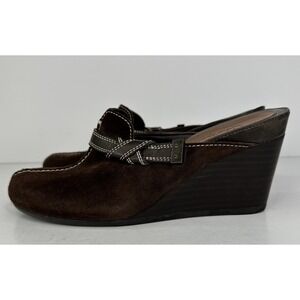 Cole Haan Wedge Clogs Mules Shoes Size 7.5 AA Brown Suede Leather Strap Western Boho
