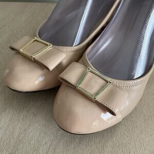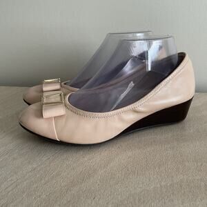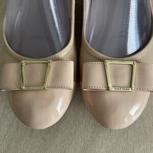 Cole Haan Emory Grand OS Wedge Heels Size 7.5B Nude Patent Leather Bow with gold detail