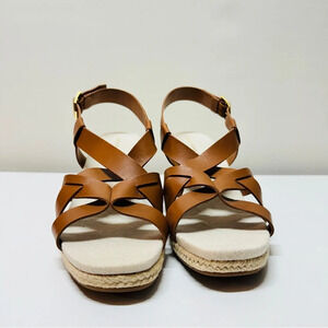 Cole Haan Women's Crystal Honey Leather Wedge Sandals Brown Size 8 Casual