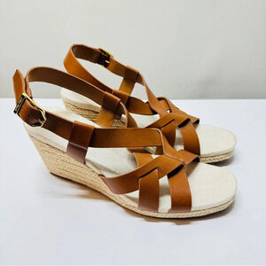 Cole Haan Women's Crystal Honey Leather Wedge Sandals Brown Size 8 Casual