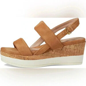 Cole Haan Wedge Sandals Brown Suede Strap Buckle Closure NWB Size 11 Comfort