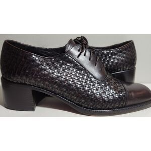Cole Haan Wellesley Woven Chocolate Leather Heeled Brogues, Women's Size 11