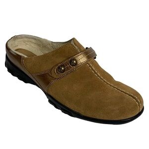 Cole Haan Whiskey Color& Metallic Bronze Sherpa Lined Mirabel Waterproof Mules 9