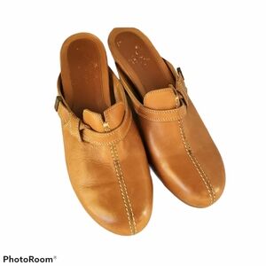 Cole Haan Whisky Brown Leather Clogs/Wedges Sz 9.5