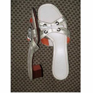 Cole Haan White Slide stack Heel Animal Print 7.5B