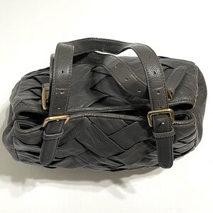 Cole Haan Woman Grey Basket Weave Pattern Shoulder Purse