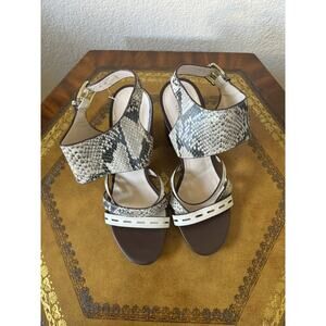 Cole Haan Women 5.5 Slingback Leather Python Print Heeled Sandals Chunky Heels