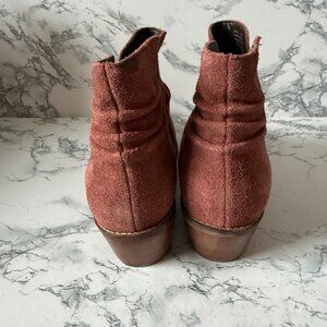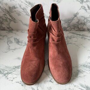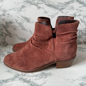 Cole Haan Women 8.5 Alayna Slouch Booties Boot Rust Suede Round Toe Heeled Shoe