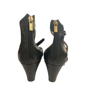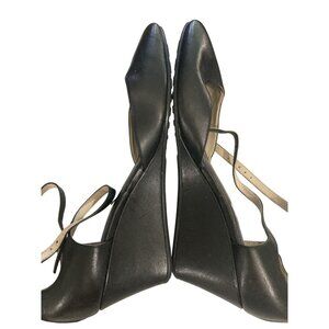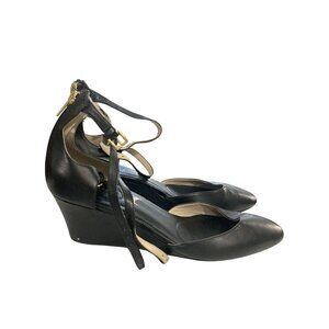 Cole Haan Women Size 9.5 Black Leather Ankle Strap Wedge Rear Zip Heels shoes