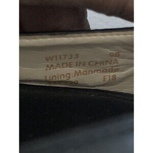 These Cole Haan wedge heels offer a sophisticated appearance with their sleek black leather design. Ankle straps provide added support, while the rear zip ensures easy wear. The wedge heel style combines elegance with comfort, making them suitable for both professional and social settings.