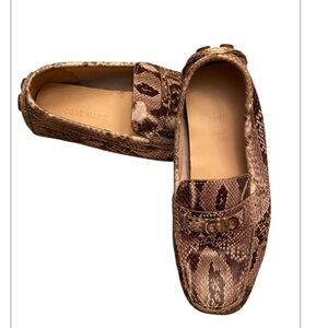 Cole Haan Women US 5.5B Beige Snake Print Moc Toe Driving Penny Loafers
