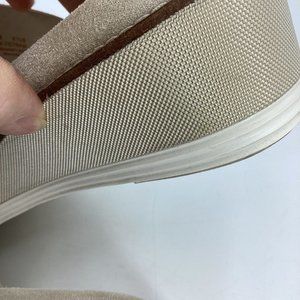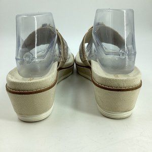 Very nice Cole Haan women's Original Grand leather platform wedge sandal W21358. The leather snakeskin desingn uppers are in excellent condition. The footbeds are very clean. The bottom tread is in good condition but show some wear. Lots of wear left. There a couple marks on the wedge has a few marks (noted in photos). See description and photos for condition and measurements.