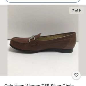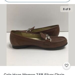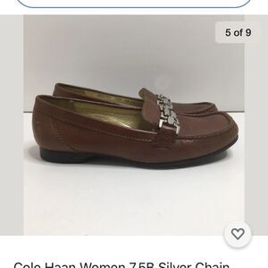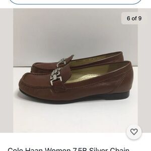 Cole Haan Women 7.5B Silver Chain Link Rust Brown Leather Slip On Loafer Shoe D20972. Great Condition.