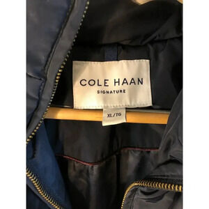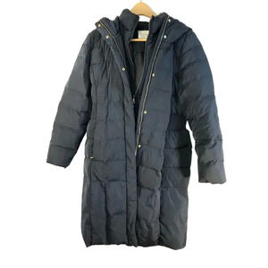Cole Haan Women's 40" Signature Hooded Taffeta Down Coat Navy Puffer Size XL