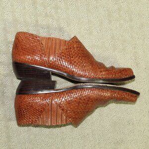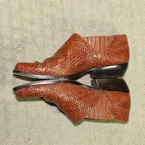 Cole Haan Women's 7.5AA Cognac Woven Leather Low Ankle Bootie