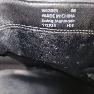FEATURES/ACCENTS: Ankle style. Mid block heel. Adjustable buckle strap accents. Almond toe. Black color. Side zip closure. Burnished leather upper with buckle detail and zipper. Lined in fabric.