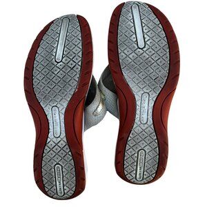 Stylish Cole Haan thong sandals in size 9B for women, featuring Nike Air technology. Gold, red, and white accents add a pop of color to any outfit.