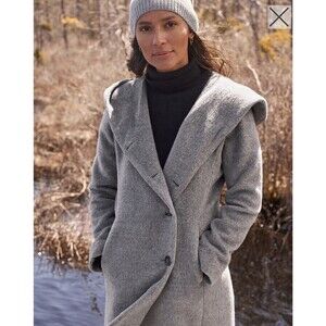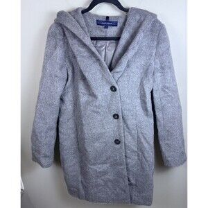 Cole Haan Women’s Alpaca-Blend Hooded Coat Size 6 Gray Button Up Wool Long