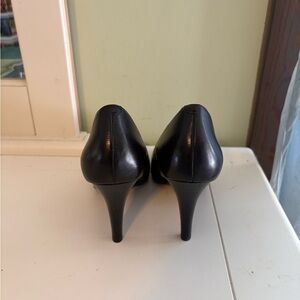 Sleek black leather heels by Cole Haan with NikeAir Technology. 3.25” stacked heel. NWOT unworn condition. Perfect for work or evening wear. Comfortable and stylish.