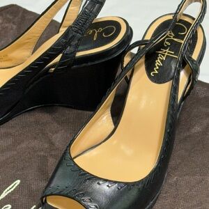 Cole Haan Women's Black Slingback Peep Hole Wedges Leather New
