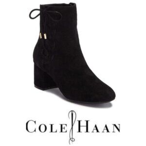 Cole Haan Womens Black Suede Side Zip Lace Up Block Heel Ankle Bootie Sz 8.5 New