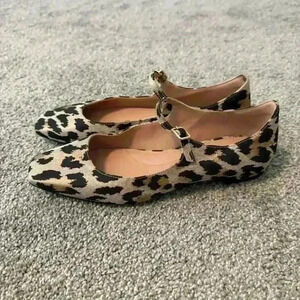 Flat Mary Jane silhouette in leopard print satin.